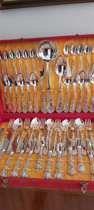 Set posate placcate argento 800 51 pezzi composto da: 12 forchette, 12 cucchiai, 12 cucchiaini,12 coltelli, 1 mestolo, 1 forchettone, il cucchiaio grande. MAI USATO