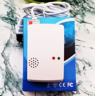 Rilevatore perdite di Gas, Gas Naturale/Gpl/ Ossido di Carbonio. Funzionamento 220 volt- La spia verde indica il corretto funzionamento, la spia rossa si accende in caso di fuga di gas ed emette un suono molto potente. Ripristino automatico dopo l'allarme. Facile installazione, basta collegarlo alla presa di corrente ad un'altezza di circa 70 cm. dal pavimento. Predisposto con foro sul retro per attacco a parete. Nuovo con scatola, provato solo per il corretto funzionamento. Astenersi Perditempo.