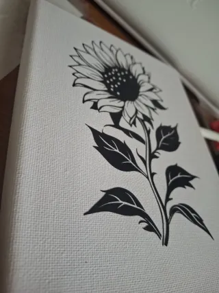 Bellissimo quadretto decorativo con un disegno stilizzato di un girasole. - Design in bianco e nero. - Stampa su tela.