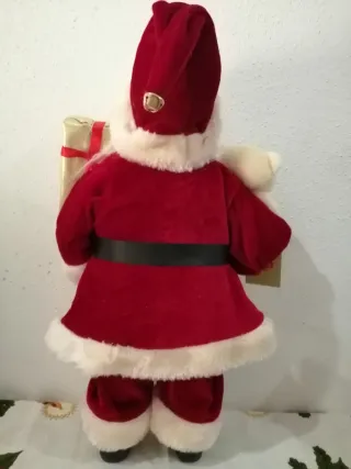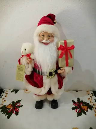 Adorabile Babbo Natale decorativo, perfetto per aggiungere un tocco festivo alla tua casa. - Indossa un cappello rosso con campanellino dorato. - Tiene in mano un piccolo orsetto bianco e un pacco regalo dorato con fiocco rosso. - Cintura dorata con dettaglio nero. - Vestito rosso con bordi bianchi in tessuto morbido.