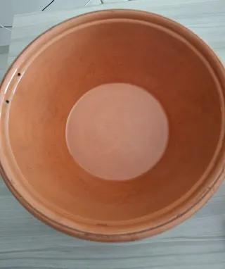 Ciotola in terracotta, ideale per impasti. Con fori per inserire filo per appendere. Ciotola tipica sarda. - Diametro: 30 cm - Altezza: 12 cm - Bordo arrotondato