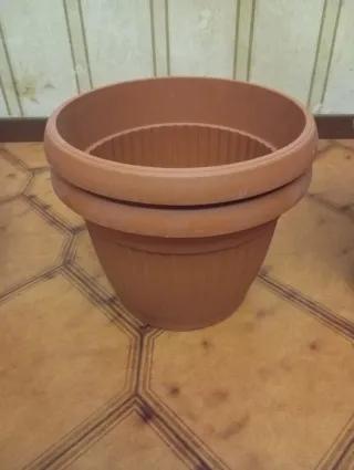 Set di vasi in plastica marrone. - Materiale: plastica e terracotta. - Colore: marrone.