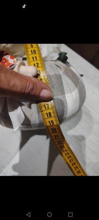 Deliziosa decorazione a tema fungo, perfetta per aggiungere un tocco di originalità. Fatta a mano con 5 utensili piccoli come decorazione - Realizzata con tessuto a quadri. - Dettagli con nastro bianco.