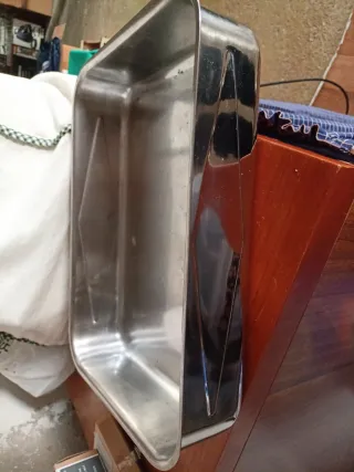 Teglia da forno in acciaio inossidabile. - Forma rettangolare. - Bordi arrotondati. - Design pulito e funzionale.