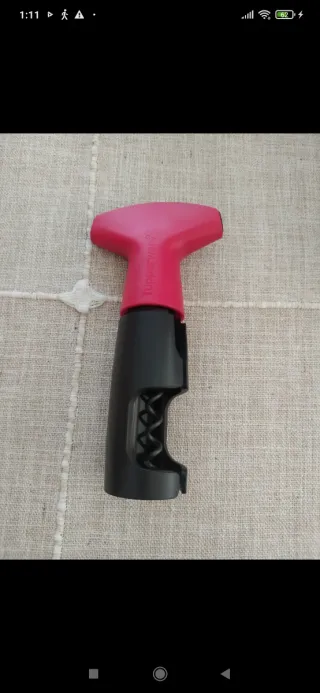 Cavatappi per vino della marca Tupperware. - Colore rosso e nero. - Realizzato in plastica resistente.