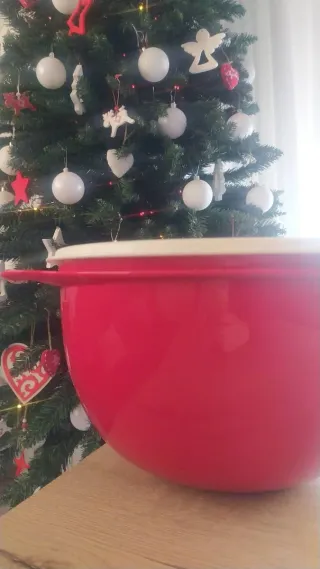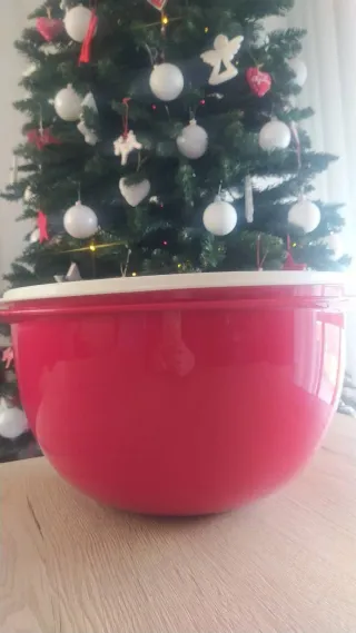 Ciotola da 10 LT in plastica con coperchio. - Colore rosso e bianco. - Materiale plastico.