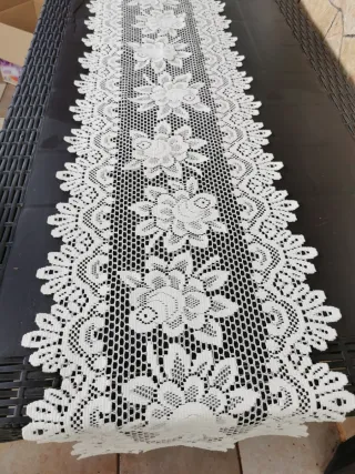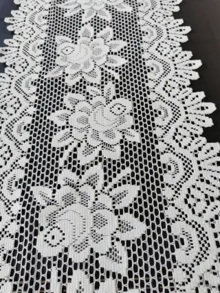 Elegante runner da tavola in pizzo bianco con motivo floreale. - Design in pizzo floreale. - Colore bianco. - Ideale per decorare tavoli.