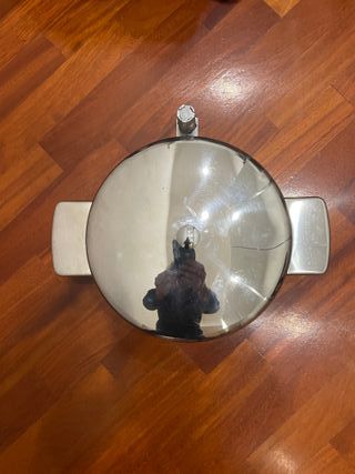 Padella per crepes o da usare comodamente come piastra. E' in alluminio, con ottimo rivestimento antiaderente e fondo spesso. Ha un diametro di cm 24, pesa circa 600 gr. Comodissima per cotture alla piastra senza grassi, si lava facilmente, comunque lavabile in lavastoviglie. La padella è stata usata poco e il fondo è in ottime condizioni, solo l'attaccatura del manico è un po' graffiata. Vendo perché non adatta al piano a induzione. Linea Etnea di Moneta.