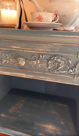 Elegante cassetta in legno con un bellissimo decoro floreale. - Motivo a rose in rilievo. - Finitura bicolore blu e oro.