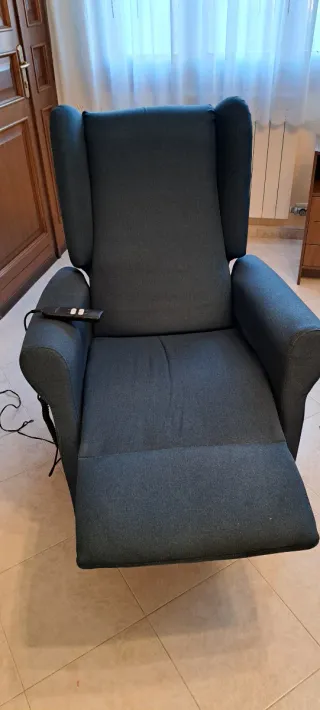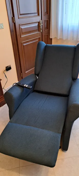 Poltrona relax in tessuto. Pagata 900 euro. Usata pochi mesi, perché la persona è stata ricoverata. Lo schienale e le gambe si alzano e si abbassano e aiuta la persona ad alzarsi in piedi. É dotata di ruote per gli spostamenti e del freno. - Colore blu navy - Materiale in tessuto.