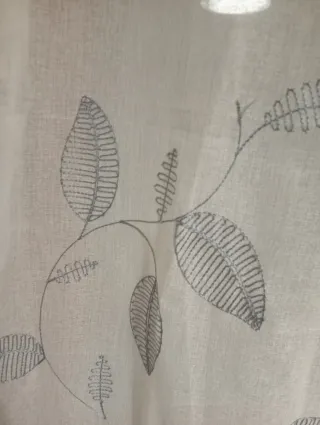 Eleganti tende per soggiorno con un delicato motivo floreale. - Tessuto leggero e traslucido. - Design con foglie stilizzate. - Bordo inferiore ondulato. Misure 140 per 270