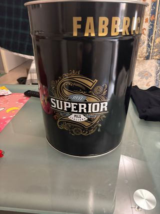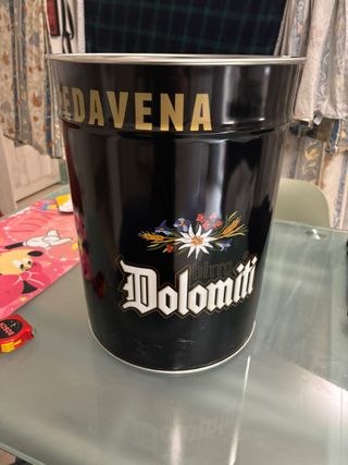 bidone in latta nuovo comprato alla birreria pedavena. era stato preso con l'intento di metterci dentro gli ombrelli poi alla fine è rimasto in garage. Utile come contenitore di qualsiasi cosa e bello anche per arredamento. Io ho una casa troppo piccola per tenerlo. Porta biancheria porta giochi o quello che vuoi perfetto vendo per inutilizzo