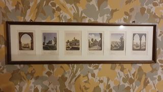 Bellissimo quadro con 6 stampe raffiguranti “I luoghi di Cristo” anni ‘60 Le stampe sono in ottime condizioni e inserite in una cornice elegante in legno scuro e rappresentano: - Gerusalemme - Monte Uliveto - Cenacolo - Sacro Sepolcro - Betlemme - Tiberiade Misura cornice 56x15 cm
