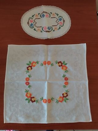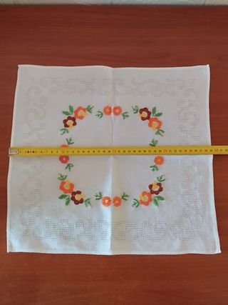 Deliziosi centrini realizzati a mano con cura e passione. Presentano un motivo floreale ricamato che aggiunge un tocco di colore e originalità. Misure in foto - Ricamo floreale colorato. - Tessuto bianco di alta qualità. - Design artigianale unico.