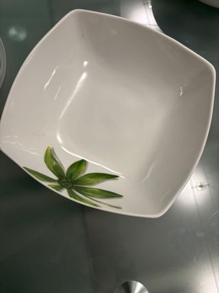 Elegante ciotola in ceramica con un bellissimo decoro floreale verde. - Design moderno e raffinato. - Ideale per servire insalate o come centrotavola.