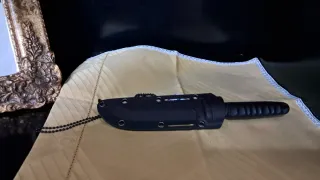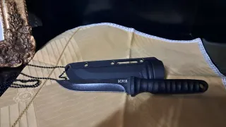 Coltello con fodero in plastica nera. - Fodero con passante per cintura. - Impugnatura ergonomica.