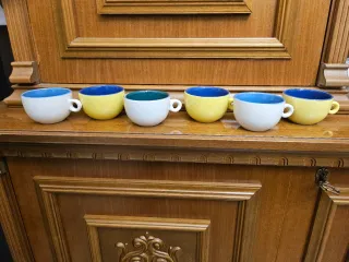 Set di sei tazze da caffè in ceramica, perfette per la colazione o una pausa. - Design moderno e colorato. - Materiale resistente e durevole.
