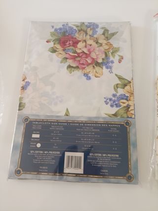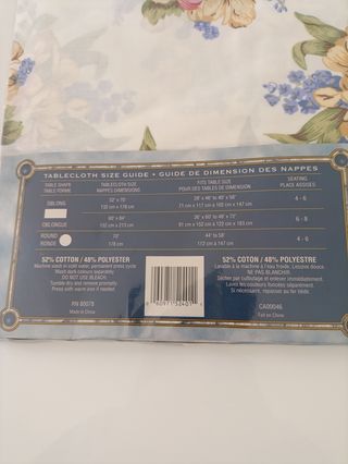 Elegante tovaglia con un bellissimo motivo floreale, perfetta per occasioni speciali o per aggiungere un tocco di colore alla tavola. - Dimensioni: 132 cm x 178 cm - Adatta per tavoli da 71 cm x 117 cm a 102 cm x 147 cm - Può ospitare 4-6 persone - Composizione: 52% cotone, 48% poliestere - Istruzioni di lavaggio: lavare in lavatrice in acqua fredda, ciclo per capi permanenti. Lavare i colori scuri separatamente. Non candeggiare. Asciugare in asciugatrice e rimuovere prontamente. Stirare con ferro caldo se necessario.