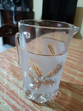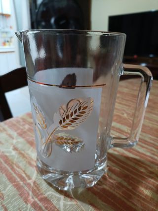Elegante caraffa in cristallo con un raffinato decoro dorato. - Design con spighe di grano. - Base lavorata.