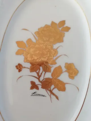 Come nuova usata poche volte. Igienizzata in lavastoviglie. Un pezzetto è saltato durante trasloco. Spedizione rapida🥰. Fiori dipinti a mano, e bordo in oro zecchino.