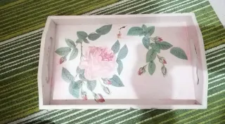 Elegante vassoio vintage con una delicata decorazione floreale. - Motivo di rose rosa e boccioli. - Bordi con manici sagomati. 32x20x6 (altezza max, misurata nel punto più alto) Spedizione rapida 😍