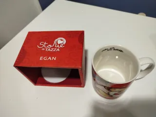 Tazza in ceramica con un simpatico cagnolino disegnato. - Design colorato e vivace. - Manico comodo per una presa sicura.