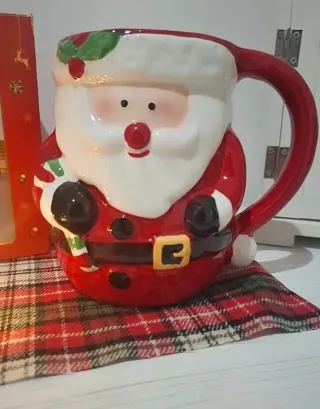 Tazza a tema natalizio con decorazione di Babbo Natale. - Design festivo e divertente. - Manico comodo per una presa sicura. - Ideale per bevande calde durante le feste.