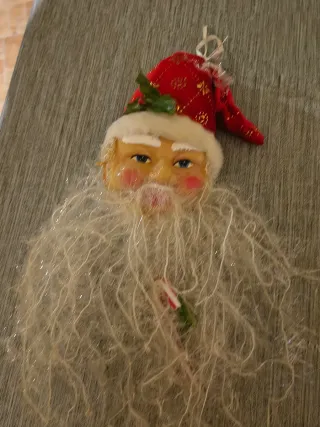 Un simpatico ornamento a forma di Babbo Natale, perfetto per aggiungere un tocco festivo. - Cappello rosso decorato. - Barba bianca e folta. - Dettagli in tessuto e plastica.