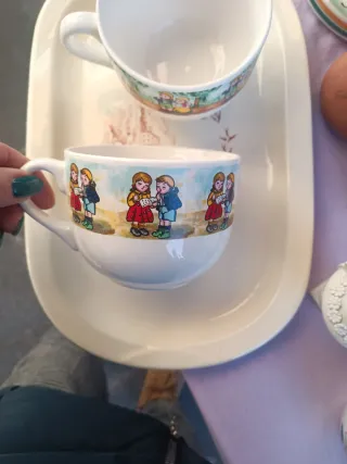 Set di due tazze da colazione con una simpatica decorazione di bambini. - Decorazione con bambini che giocano. - Design allegro e colorato.