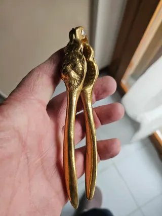 Schiaccianoci in ottone lucido con dettagli di teste di leone. - Materiale: ottone lucido. - Design: teste di leone.