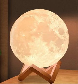 Lampada decorativa a forma di luna, perfetta per creare un'atmosfera suggestiva. - Diametro di 18cm. - Base in legno per un supporto stabile.