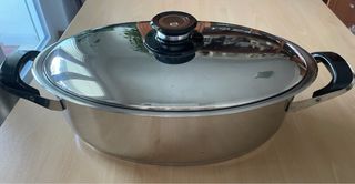 Pentola ovale AMC, capienza 5,5litri, diametro 34cm, altezza 11cm Coperchio AMC, diametro 34cm, con visiotherm Usata, adatta per tutti piani di cottura trane per induzione ( Articolo 1 - 28)