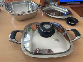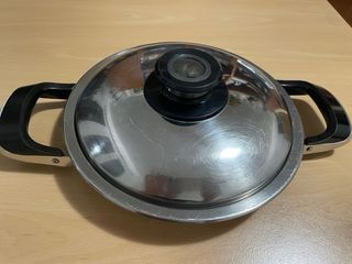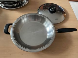 Pesciera AMC , Diametro 34cm, altezza 6,5cm Coperchio AMC con visiotherm Usata, in ottime condizioni Adatta per tutti piani di cottura, trane per induzione. ( Articolo 195 - 17)