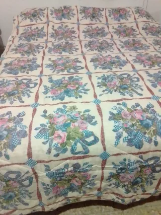 Bellissimo copriletto vintage,un pezzo unico dipinto a mano. - Motivo floreale con fiori nei toni del beige,marrone,verde - Bordo rifinito con pizzo ad uncinetto. - Tessuto con trama a rilievo.
