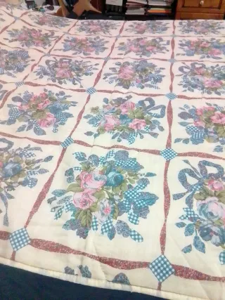 Trapuntino con un delicato motivo millefiori. Per letto singolo mis. 240x160 - Motivo floreale con nastri. - Bordi decorativi