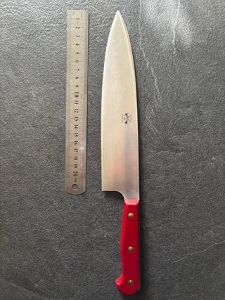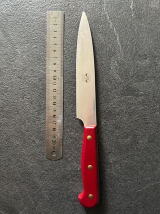 Set di coltelli Coltelleria Berti con manici rossi. - Set di 5 coltelli. Acqistabili anche singolarmente: -Il preciso trinciante 22,90 € -Il principe trinciante grande 25,90 € -Lo specialista per arrosto 23,90 € -Il fornaio 23,90 € -Tou orientale con fodero 34,90€