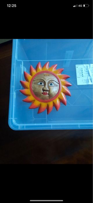 Sole decorativo in legno, perfetto per aggiungere un tocco di calore alla tua casa. - Finitura color rosso arancione. - Realizzato in legno intagliato.