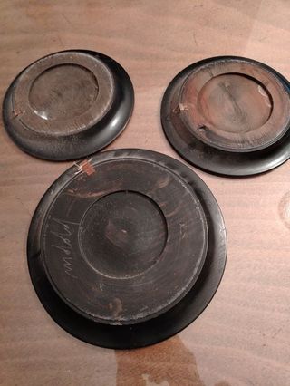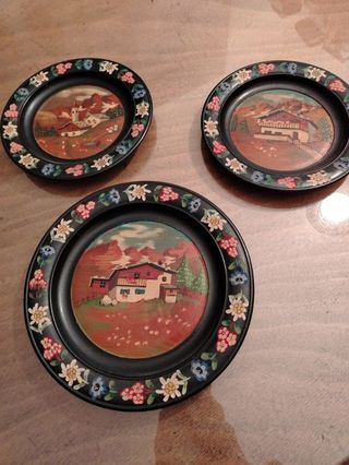 Tre quadretti artigianali in legno,dipinti a mano,misure:24,20,29 cm,in ottime condizioni.Particolari! Prezzo fisso.