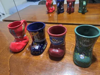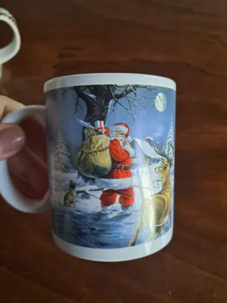 4 tazze con manico disegni natalizi. Misure in cm nelle foto. 3 marca koessinger, la bordeaux art design sempre made in germany.