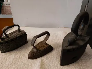 Set di tre ferri da stiro antichi in ghisa. Questi pezzi d'epoca aggiungono un tocco di storia a qualsiasi ambiente. - Design classico e robusto. - Ideali come oggetti decorativi o da collezione.