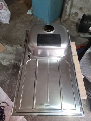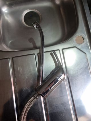 Set lavandino e miscelatore. PER BASE DA 90 - Finitura in metallo lucido. - Design moderno. DA CUCINA EXPO, COME NUOVO, CON ACCESSORI PER MONTAGGIO. (ASSENTE: PILETTA E SIFONE)