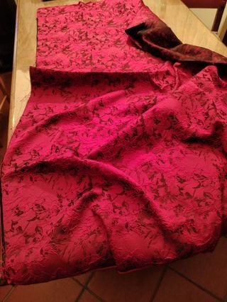 Scampolo di tessuto damascato nuovo di alta qualita',tessuto Jacquart rosso e nero,broccato,misure:91x145 cm circa.Raffinato. Prezzo fisso.