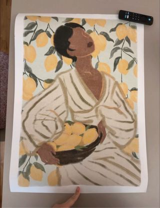 Poster decorativo con stampa di una donna e limoni. - Dimensioni: 50cm x 69.5cm. - Stampa su carta di alta qualità.