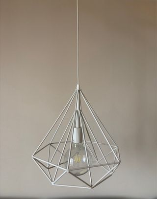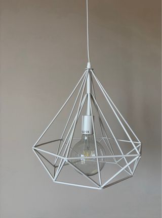 Lampadario a sospensione dal design moderno a forma di diamante. - Struttura in metallo. - Colore bianco. - Lampadina a vista compresa nella spedizione