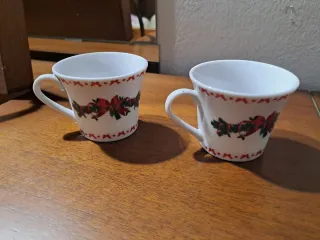 Set di due tazze in ceramica con disegni natalizi. Misure in cm nelle foto.