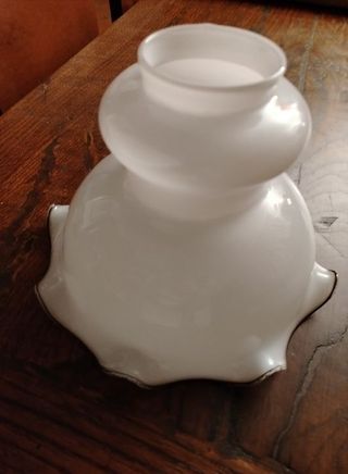Opalina vintage,color bianco-latte con bordo marrone e beige,ondulata,condizioni perfette come al nuovo,diametro maggiore:30 cm circa,diametro minore:6,50 cm con foro di 4 cm.Bellissima! Prezzo fisso.