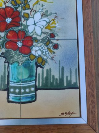 Quadro in ceramica su piastrelle con struttura in legno e bordi cromati, degli anni '70 in perfette condizioni