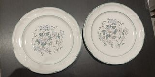 Bellissimi piatti in porcellana, decorati con fiori e nastri azzurri e gialli. Sono perfetti per un tocco di eleganza sulla tua tavola. - 2 piatti piani + 2 a scodella - Motivo floreale delicato. - Bordi finemente decorati. Castelverde (periferia est di Roma)
