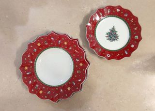 Elegante set di 6 piatti della linea Toy's Delight di Villeroy & Boch, perfetti per le festività natalizie. Composto da: 2 Piatti Piani 2 Piatti Fondi 2 Piatti Dessert - Design festivo con decorazioni a tema. - Bordo ondulato e dettagli curati. Nuovi mai usati