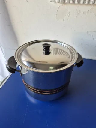Pentola in acciaio inossidabile Lagostina con coperchio coordinato. Un classico per la tua cucina. - Realizzata in resistente acciaio inossidabile. - Manici neri per una presa sicura. - Coperchio in acciaio con pomello nero. - Ottime condizioni -Misure diametro 23cm, altezza 19cm.